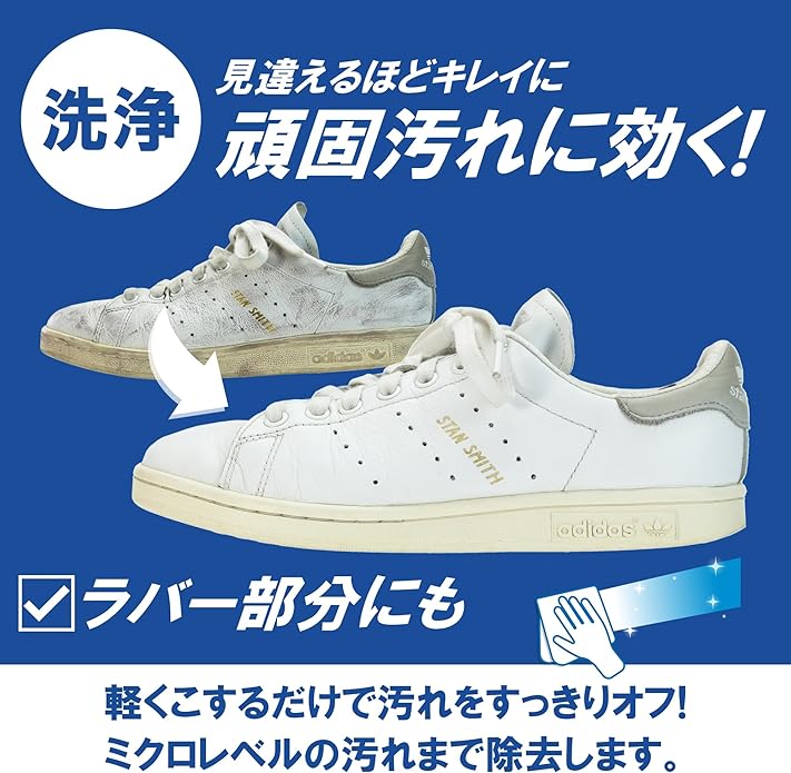 こびりついたソールの汚れも軽い力で落とせる洗浄力。ミクロレベルの汚れまでしっかり除去します。