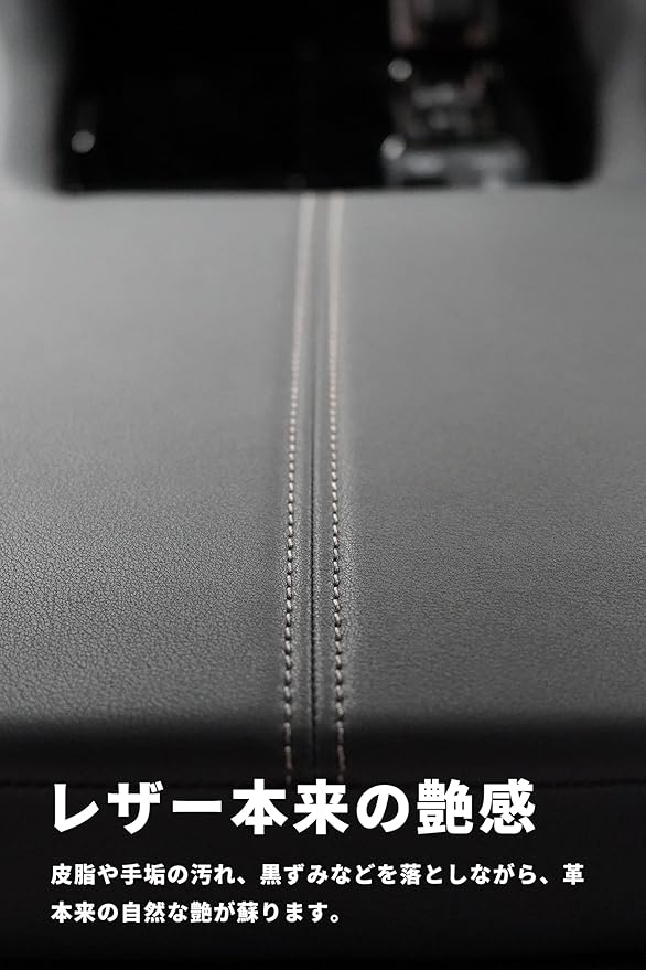 洗浄力と艶出し: 皮脂や手垢の汚れ、黒ずみなどを落としながら、革本来の自然な艶が蘇ります。