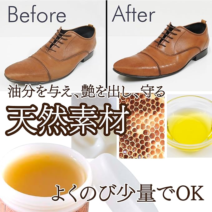 【革に優しい天然素材♪】天然成分のワックスだから革にしっかり馴染み、ツヤ・ハリ・柔軟性がよみがえります。お手入れに使用していただくだけでお気に入りの革製品を長くご愛用いただけます
