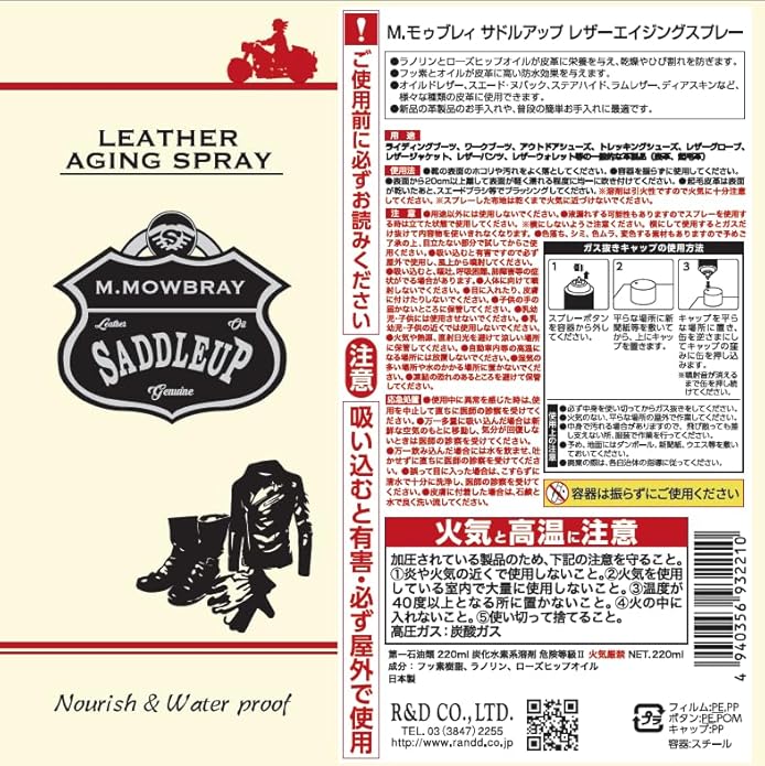 栄養・防水スプレー エイジング レザージャケットのお手入れに ツヤ・保湿・防汚 レザーウェア ブーツ グローブ 財布 ラノリン ローズヒップオイル 220ml ガス抜きキャップつき レザーエイジングスプレー | etshop