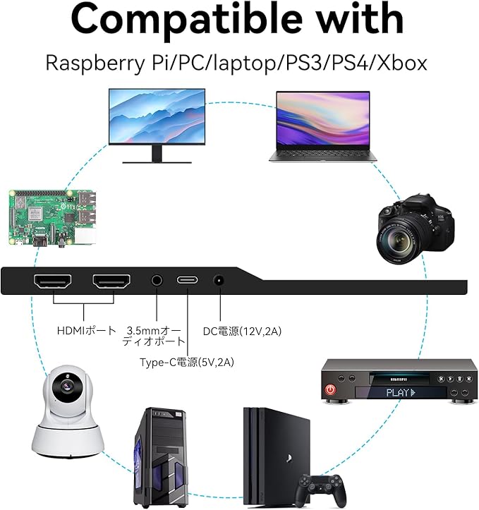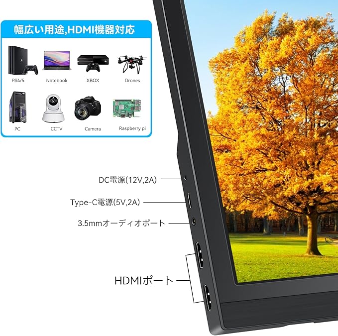 3.【幅広い用途】:画面遅延3msで、ゲームに最適です。ドライバ不要ですぐに使用でき、画面リフレッシュレートは60Hzなので、FPSゲームやアクション映画などの動きの速いコンテンツも楽しめます。PCモニター、ノートパソコン、産業機器モニター、カーオーディオ/ビデオ モニターなど。 拡張モードやレプリケーションモードに簡単に接続でき、幅広い用途に対応します。 Raspberry Pi PCのモニター画面として Hdmi出力に対応 .