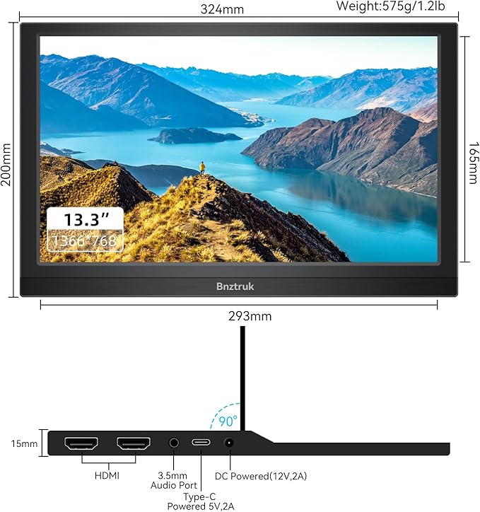 13.3 インチ モバイルモニター Bnztruk 薄型 軽量 HD 1366x768 PC 16:9モニター HDMIポート強い互換性 ノートパソコン Laptop Raspberry Pi 4B/3B+/3B PC Computer PS4 PS5 | etshop