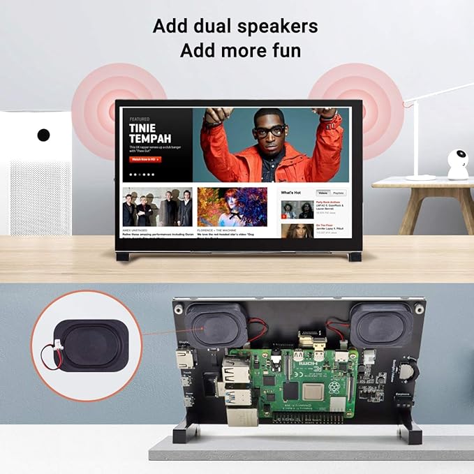 音声・映像体験の向上:デュアルスピーカーを内蔵し、3.5mmイヤホンジャックおよびデジタル音声出力に対応。音量とバックライトの明るさは調整可能で、DIYプロジェクト、監視用途、ゲーム体験など幅広いシーンで活用できます。