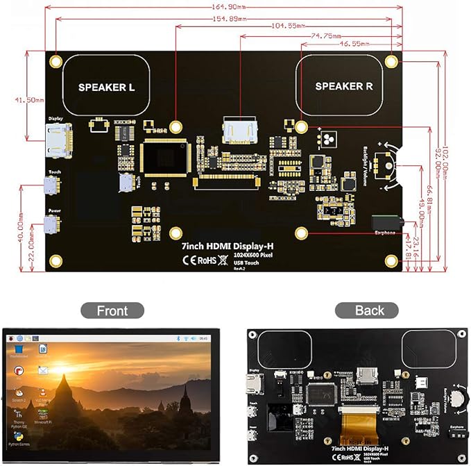 ELECROW 7インチ タッチスクリーンモニター Raspberry Pi用 – 1024x600 IPS液晶 ディスプレイスタンド付き 静電容量式タッチ対応 小型HDモニター Raspberry Pi 5/4B/3B+/3B、BeagleBone Black、Windows 11/10/8/7に対応 ドライバ不要 | etshop