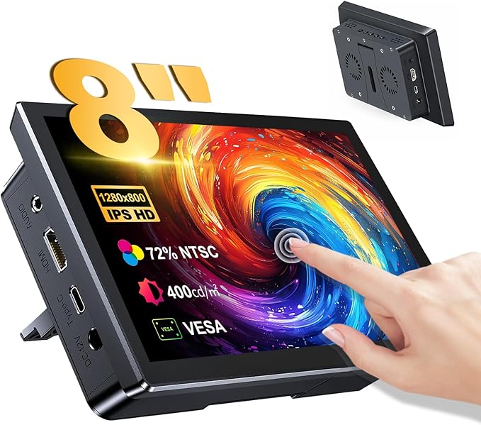 優れた画質: この8インチタッチスクリーンモニターは、1280X800解像度の美しいHD画面を備え、画質はクリアで鮮明です。高度なIPS光沢スクリーンは178 の全視野角をサポートし、印象的な視覚体験をもたらします。