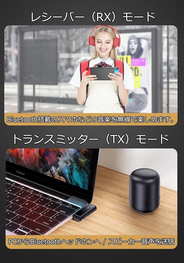 【日本初一台三役・ワイヤレス非対応機器を カンタンに ワイヤレス化】:このBluetooth5.1 トランスミッター& レシーバーは、音声アシスタント(ハンズフリー通話)、送信と受信機能があり、自由に切り替えることができます。コンピュータ、テレビ、セットトップボックス、ヘッドホン、スピーカー、アンプなどで一般的に使用される3.5MMオーディオ入出力をサポートします。これにより、日常のオーディオ、ビデオ、スポーツシーン、音楽再生、通話などの機能を満足します。持ち運びに便利で、使いやすく、ワイヤーの束縛を完全に排除します。