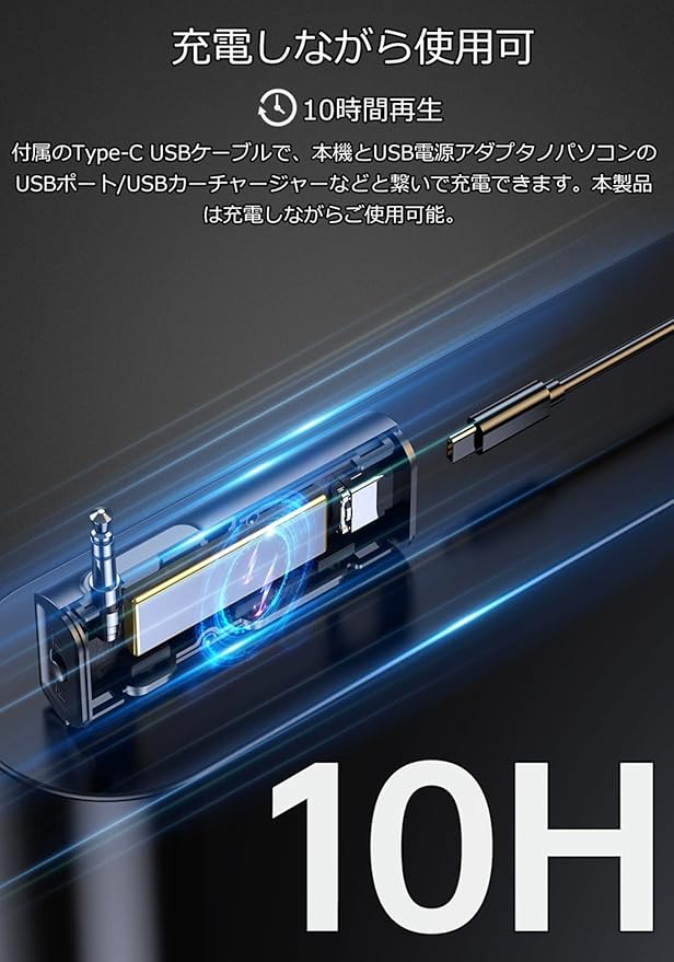 【急速充電&長いバッテリー寿命】電源を入れてペアリングモードに入る1つのキー。 内蔵バッテリーはバッテリー寿命が長く、フル充電後最大10時間の使用に対応できます。 急速充電で、2時間以内に完全に充電できます。