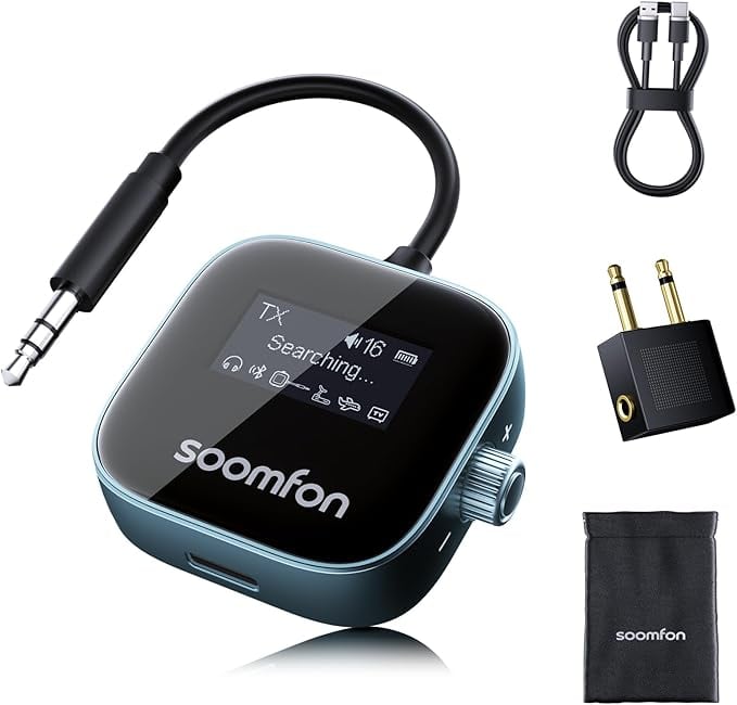 SOOMFON Bluetoothトランスミッター& レシーバー、Bluetooth5.3、LCD スクリーン付き 2-in-1 ワイヤレス 飛行機/車載/テレビ/ホーム 送信機&受信機 Airpods/ヘッドフォン用 デュアルペア、 Bluetooth 3.5mmAux オーディオトランスミッター/レシーバー SBC/AAC対応 フライト、テレビ、トレッドミル用『TELEC認証済み』 | etshop