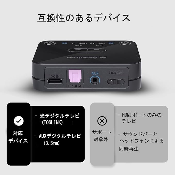 Avantree Audikast 3 - aptX Adaptive 対応 Bluetooth 5.3 トランスミッター(TVオーディオ用)、光およびAUX出力対応、デュアルヘッドフォン接続、最大30mの通信範囲 | etshop