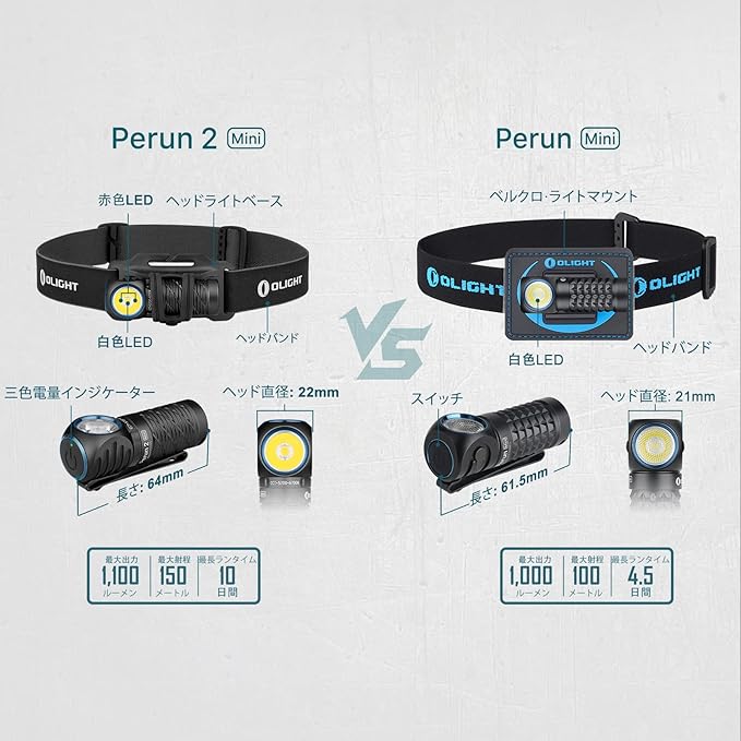 OLIGHT(オーライト) Perun 2 Mini ヘッドライト フラッシュライト 懐中電灯兼用 充電式 高輝度led 1100ルーメン 角度調整可能 6つの点灯モード IPX8防水 耐衝撃 軽量 防災 散歩 登山 アウトドア 作業 夜釣り 停電対策 5700~6700K コールド ホワイト (ブラック) | etshop