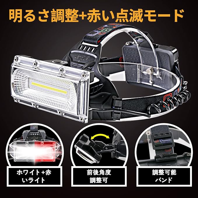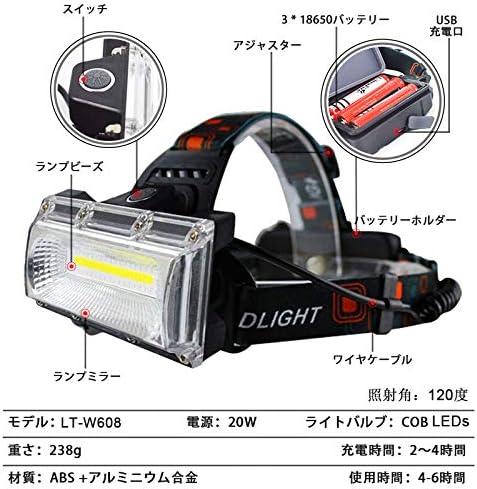 【120 広角と高輝度チップ搭載】:高品質のCOB集積led光源モジュールを使用し、高出力20WのLT-W608Nヘッドライトです。LEDライトとCOBライトの組み合わせで、高い貫通性があって、連続的均一な発光、最強1800ルーメン達し、明るさ抜群です。ユニークなワイドランプ設計、120度の広角で照らし、広範囲をキレイに照射することができます。暗闇の視界を保てることが最大の利点です。夜間釣り、徒歩、登山、キャンプ、日常使用など、さまざまな環境に適用して、安全が保証できます。