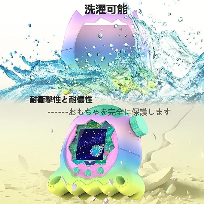 BCWXIONシリコン保護シェルはTamagotchi Paradise(エッグパーティー)に適している スクリーン保護フィルム、ストラップ付き、底は立つことができます、耐衝撃、防塵、全面保護ケース(虹色) | etshop
