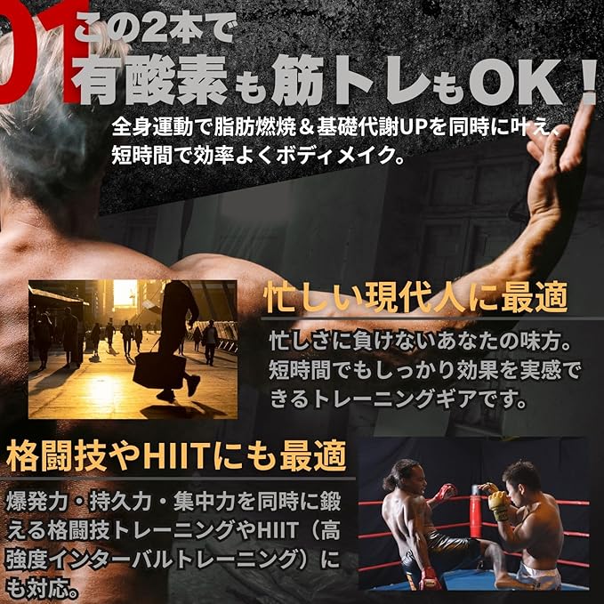 ✅【ロープレスでもパワフル!新感覚の筋トレツール】 この製品は、スチール構造により強靭な耐久性を実現。さらに、熱収縮グリップで滑りを防ぎ、快適な持ち心地を保ちながらワークアウト可能。ダイナミックな動きで全身の筋肉を刺激し、筋力強化、有酸素運動、格闘技系トレーニングなど、幅広い目的に対応します。