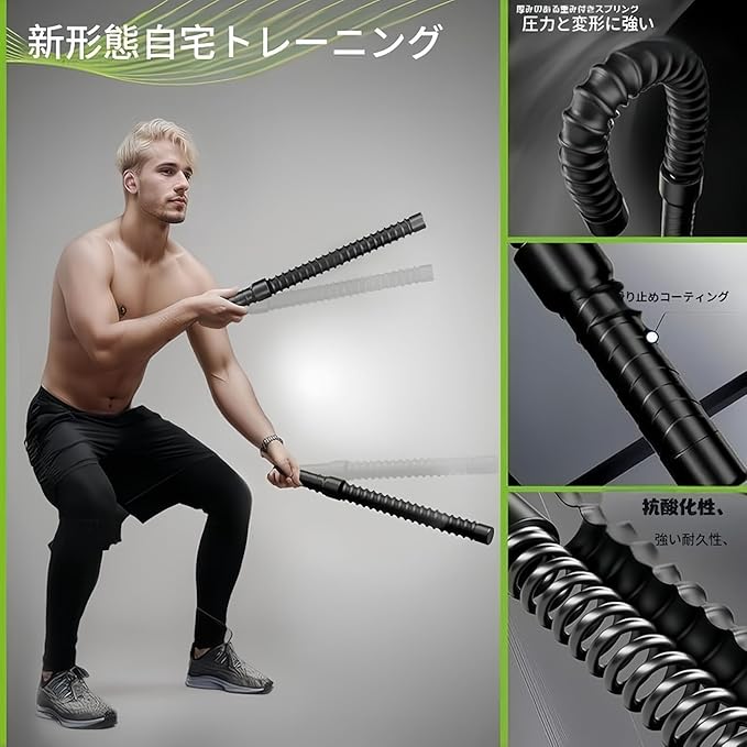 【耐久性のある素材】このコードレストレーニングロープは高強度スチール製で、優れた靭性と弾力を兼ね備えています。さらにシリコンカバーが錆を防ぎ、長期間使用しても変形しにくい設計。トレーニング効果を最大化する耐久設計を実現しました。表面はチップに強い加工でキズや剥がれにも強く、長期間美しさを保ちます。着脱式のシリコンヘッドで家具や壁も傷つけません。