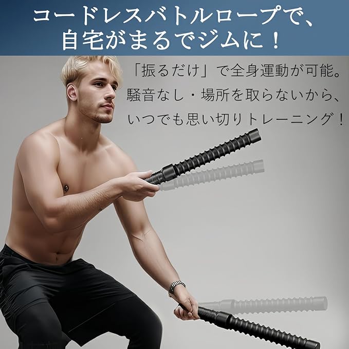 【筋力トレーニングに必須(全長約50cm・2本の重さ約0.9kg)】このコードレスバトルロープは、腕・胸・背中・脚まで全身を鍛えるように設計されています。筋力トレーニング、持久力向上、HIIT(高強度インターバルトレーニング)など、あらゆる目的に対応。コンパクトなデザインながら、多機能なトレーニングツールとして、どこでも効率的な全身運動を実現します。