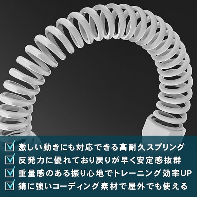 【セット内容】バトルロープ 2点 ストラップ 2本 ※製造時期により、持ち手や先端のデザインが変更になることがございます。 【サイズ(約)】全長:46cm 【カラー】ピンク・グレー・ブラック ※お好きなカラーをお選びいただけます。【材質】バネ:鋼 グリップ:シリコン+PP