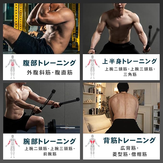 筋肉増強や身体の引き締めに!バトルロープを手に持ち上下に振るだけと簡単仕様なので、筋トレ初心者の方でも手軽にお使いいただけます。本体は耐久性が高いため、激しく動いても壊れにくい仕様です。