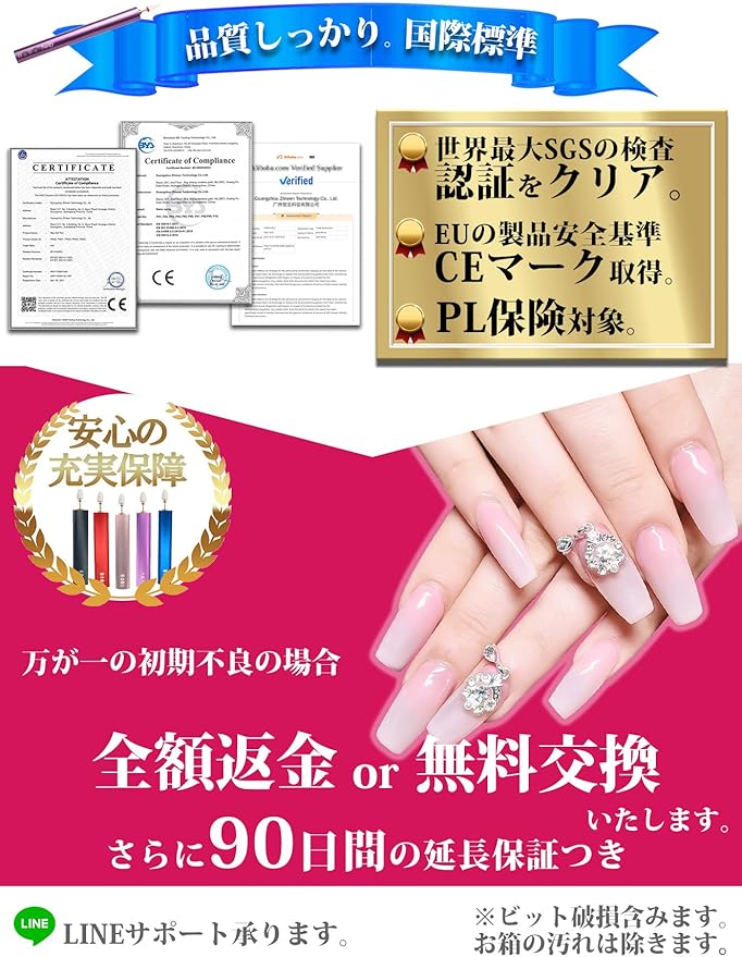 説明書にあるご注意を守り正しくご使用ください。お爪の削りすぎにはくれぐれもご注意いただいて、美しいネイルの仕上がりを実現していただけると嬉しく思います。