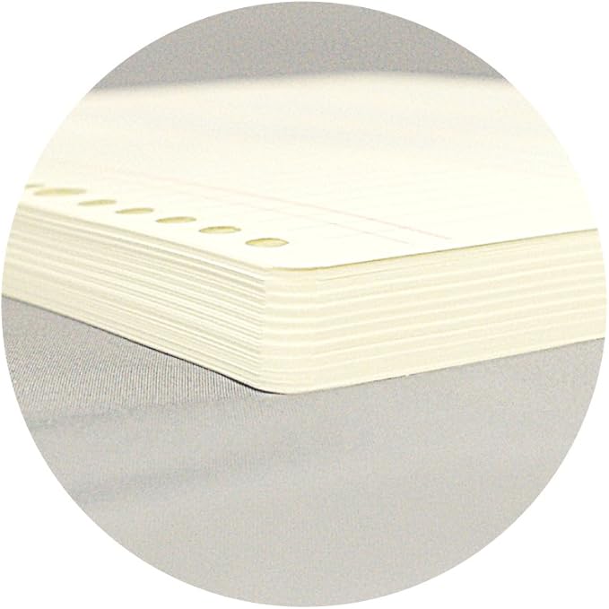 ●ルーズリーフ用に漉(す)かれた紙を採用しているため、記帳の際に目が疲れず、インクのにじまないペン滑りの快適な手書き用リーフです。