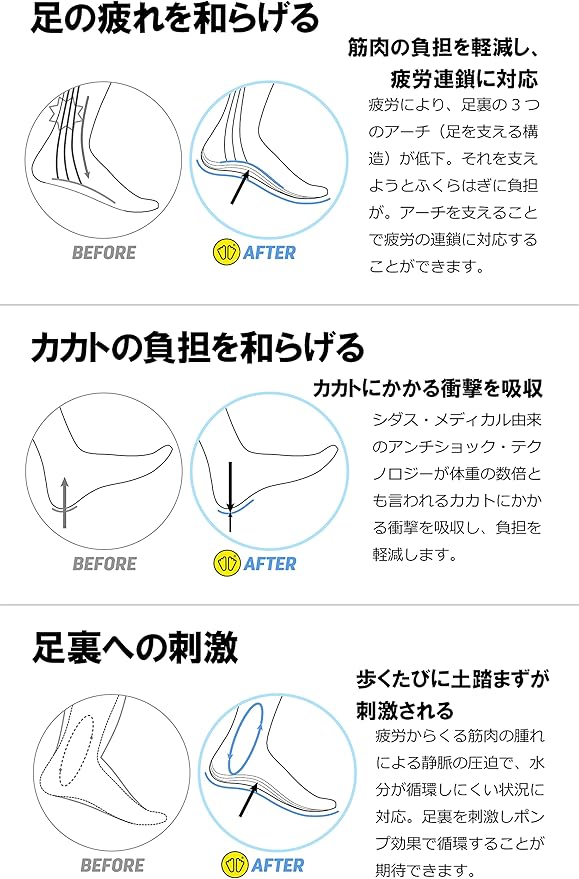 アーチサポート、衝撃吸収、軽量