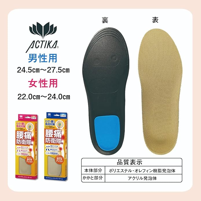 腰・ヒザでお悩みの方に!アクリル発泡体がかかとへの衝撃を吸収。