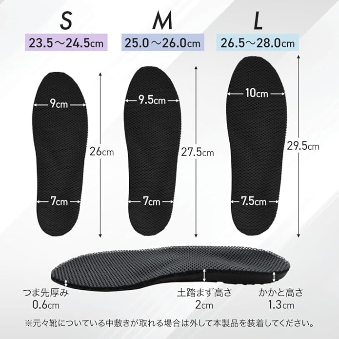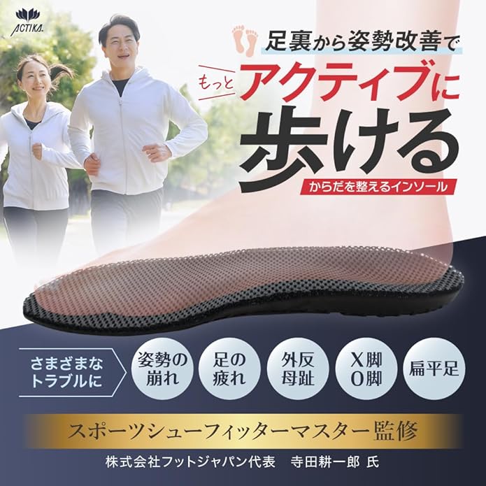 4万人の以上の足を計測し、オーダーメイドインソールを開発作成してきたシューフィッターが監修したインソール。