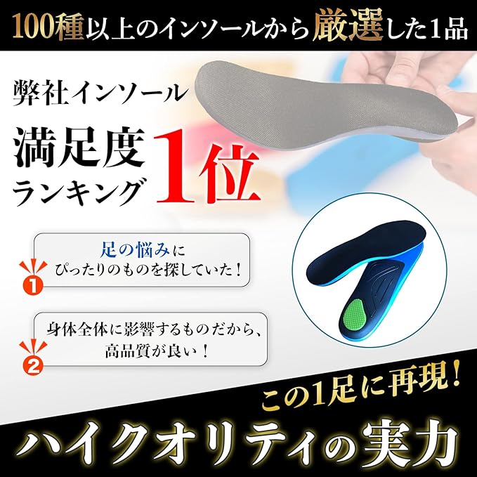 【足の悩み/負担 に対応】 扁平足 足底筋膜炎 (腱膜炎) 外反母趾 に加え、膝の負担対策としても活躍します。衝撃吸収、アーチサポート、過剰回内予防(かかとのサポート)などあらゆる角度から足を守る 中敷き となっております。※注意点:足の負担軽減を保証する商品ではありません。