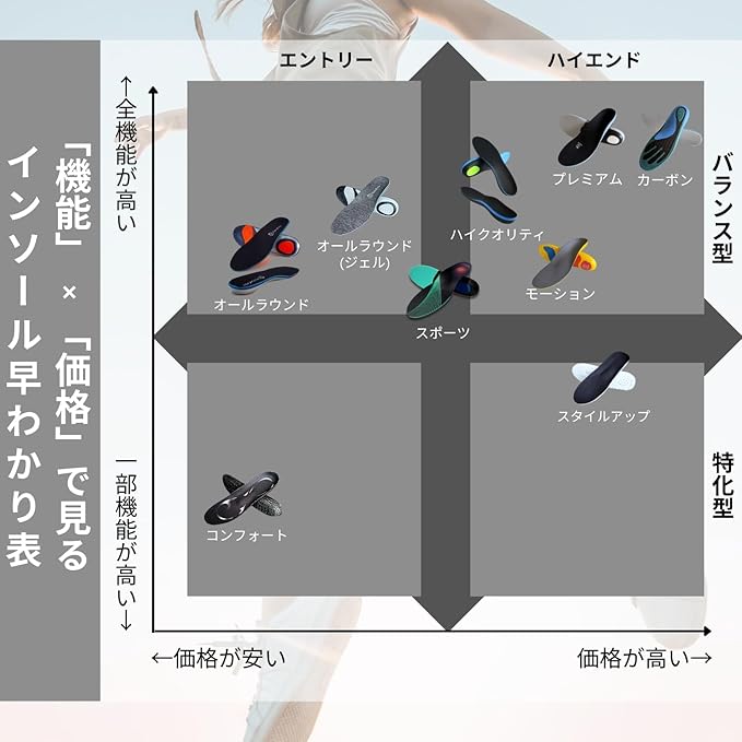 特徴 クッション、衝撃吸収性、アーチサポート、通気性