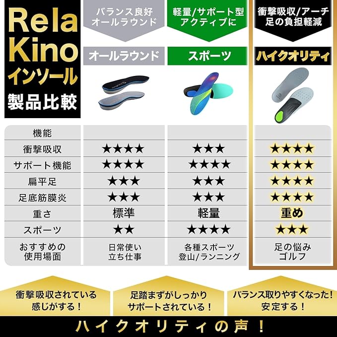 【商品分類/サイズ展開】タイプ: ハイクオリティ / サイズ XS:22cm~24cm S:24.5cm~25.5cm M: 26㎝~27cm L:27.5cm~28.5cm XL:29cm~31cm の5サイズ展開しており、男性 女性 共に 中敷 としてご活用いただけます。 ※ご利用の靴がピッタリサイズの場合、本商品のご活用にて窮屈になる場合がございます。