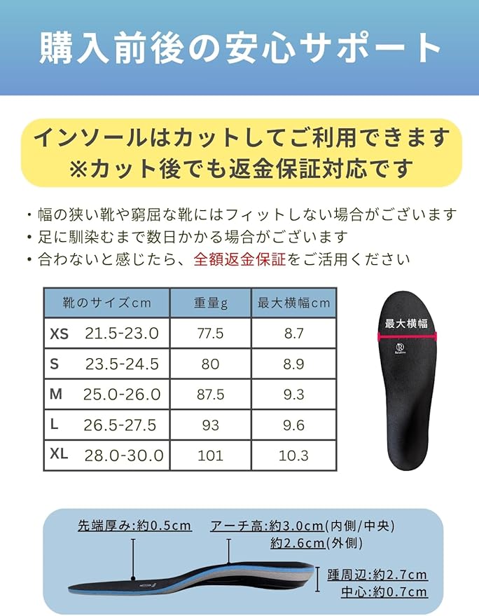 [カット線あり・30日間安心サポート]:靴に合わせて簡単サイズ調整。サイズ交換や返品はHOT保証で対応します。