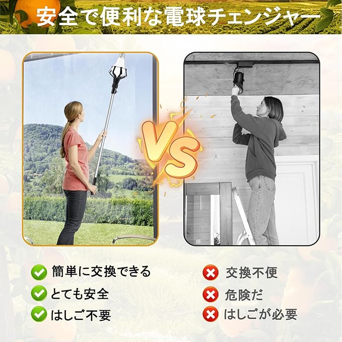 ランプチェンジャー コウショ Ledランプチェンジャー 伸縮式355cm延長ポール 高所 電球交換棒 取り外しツール バスケットと吸盤付き 天井 電球チェンジャー 埋め込み型 取り外しツール フルーツ収穫取り 果物狩り | etshop