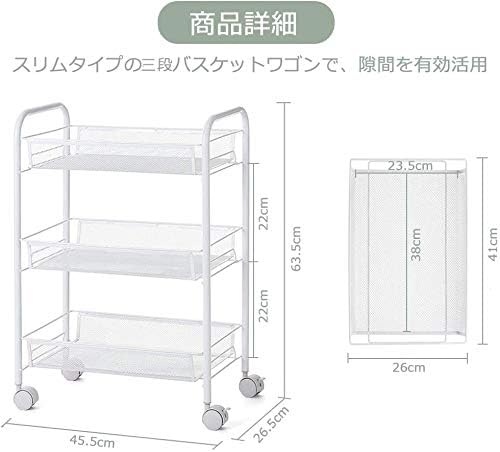 【商品詳細】★本体サイズ:幅26.5 奥行45.5 高さ63.5cm 重量(約):2.35Kg ★耐荷重(約):45kg(一つあたり15kg)★バスケット間口:幅26 奥行41cm ★バスケット内寸:幅23.5 奥行38 高さ6cm