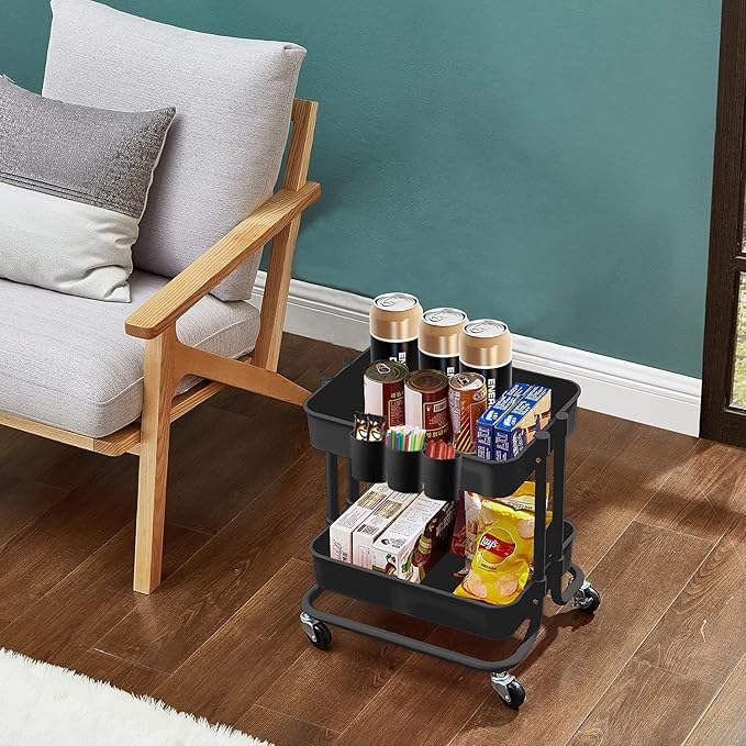 Melody House キッチンワゴン キャスター付き 2段 小物収納 コーナーラック 耐荷重40kg キッチンカート スチール+ABS 台所収納 収納ラック 棚 バスケット ブラック