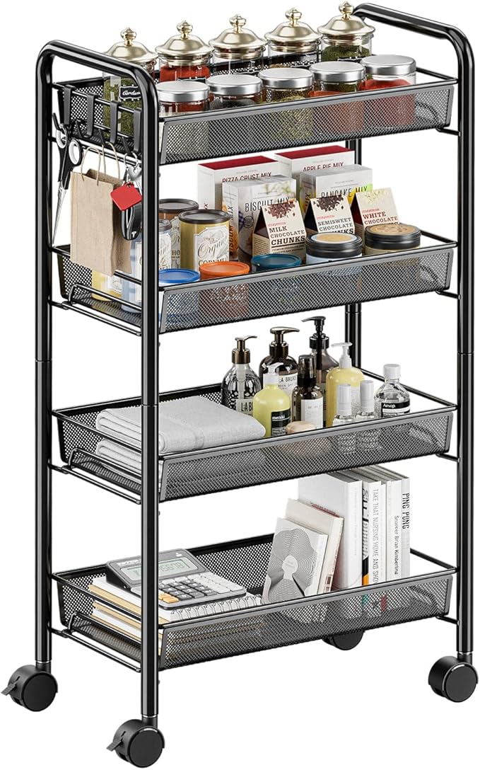 【メッシュトレイのデザイン】-メッシュスタイルのオープントレイは、カゴのメッシュが細かくて物を載せやすくしています。またトレーを外すことができ、掃除もしやすくなります。中身が見えますので、探しやすく通気性も良くて便利です。