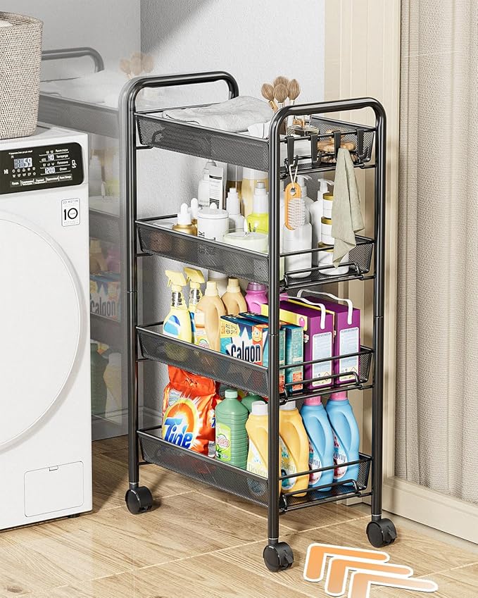 【商品詳細】★本体サイズ:幅26.5 奥行45.5 高さ84.5cm 重量(約):3.47Kg ★耐荷重(約):60kg(一つあたり15kg)★バスケット間口:幅26 奥行41cm ★バスケット内寸:幅23.5 奥行38 高さ6cm。