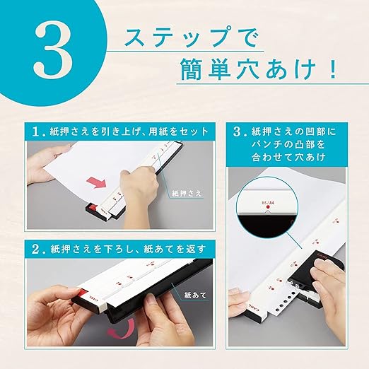 学校や塾で配布されたプリント・テキストを簡単にルーズリーフ化できるパンチ。書類の整理整頓に最適。