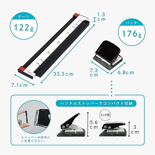 【本体サイズ】(ゲージ)W333 L71 H13mm、(パンチ)W73 L68 H56mm