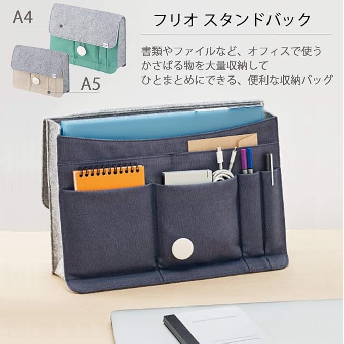 フリオ スタンドバッグは、書類やファイルなど、オフィスで使うかさばる物を大量収納してひとまとめにできる、便利な収納バッグです。