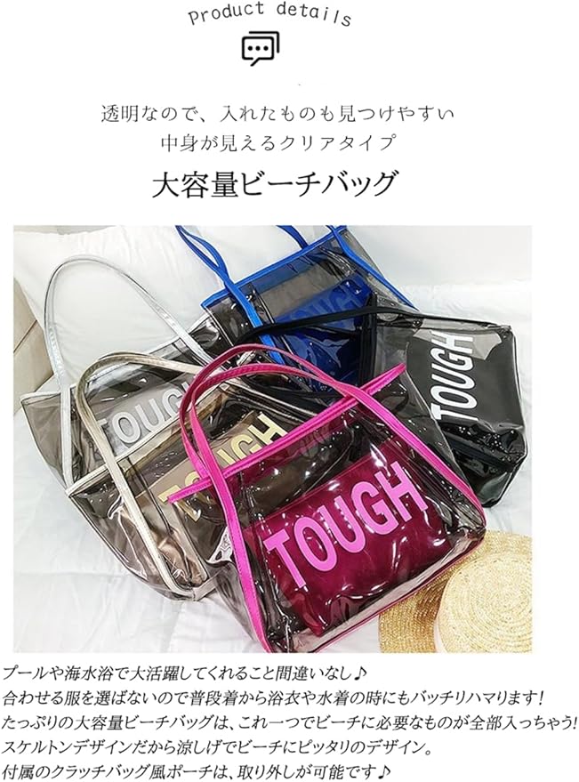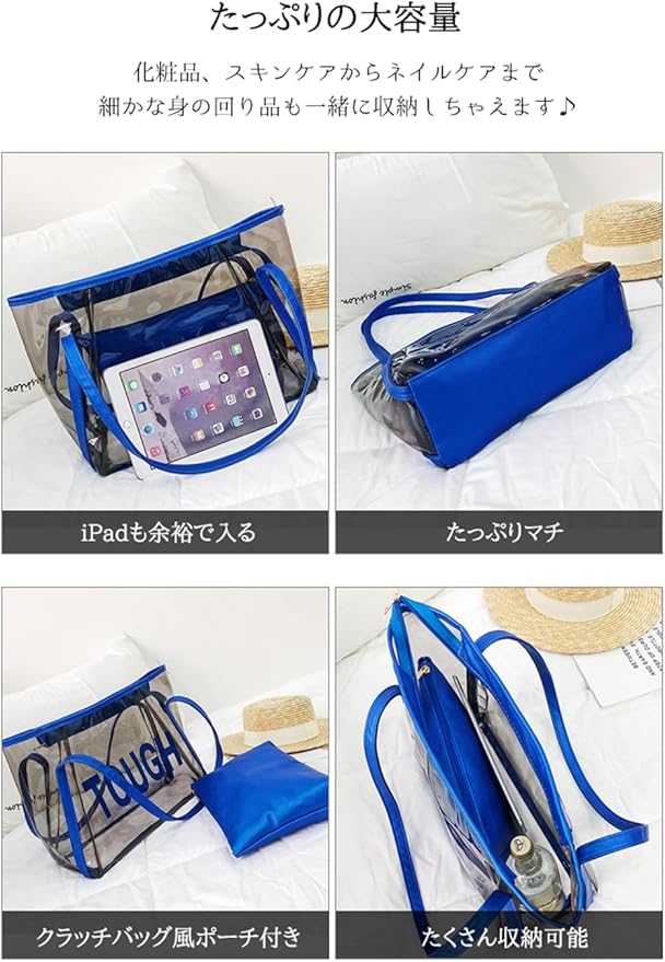 [YAYUPLUS] ビーチバッグ レディース 大容量 クリア トート 透明 ポーチ付き ハンド クラッチ 収納 大きめ マチ アウトドア 夏 スポーツ ショルダーバッグ 海 イベント 鞄 女性用 お洒落 温泉 ビーチグッズ | etshop