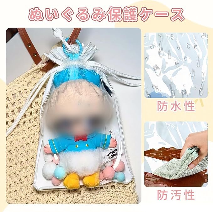限定商品 痛バッグ ぬいぐるみポーチ 19/21cmサイズ対応 ぬいポーチ 人形の保管場所 ぬい 外出 見せバッグ 推し活グッズ 巾着型 高い透明 防塵 防水 ポンポンボール& 盗難防止ロープ (ホワイト(18*21CM)) | etshop