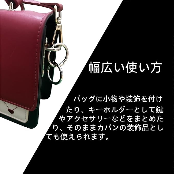 【様々なシーンで使える】バッグに小物や装飾を付けたり、キーホルダーとして鍵やアクセサリーなどをまとめたり、そのままカバンの装飾品としても使えます。