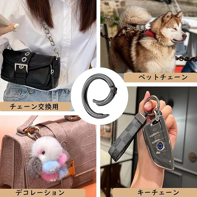 【用途】キーホルダーやチェーン金具のつなぎ用途に適したポピュラーな金具です。クラスプ、キー、ネックレス、ジュエリー、タグ、DIY工芸品などの小さな部品の接続に使用されます。