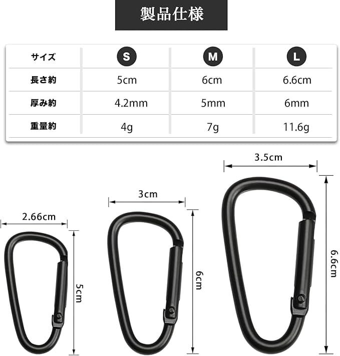 【用途】 キャンプなどの野外活動に最適、釣り、ハイキング、旅行、キーホルダー、荷物、おもちゃ、ケトル、バックパック、などの場合に対応できます。(登山用カラビナではありません、ご注意してください)