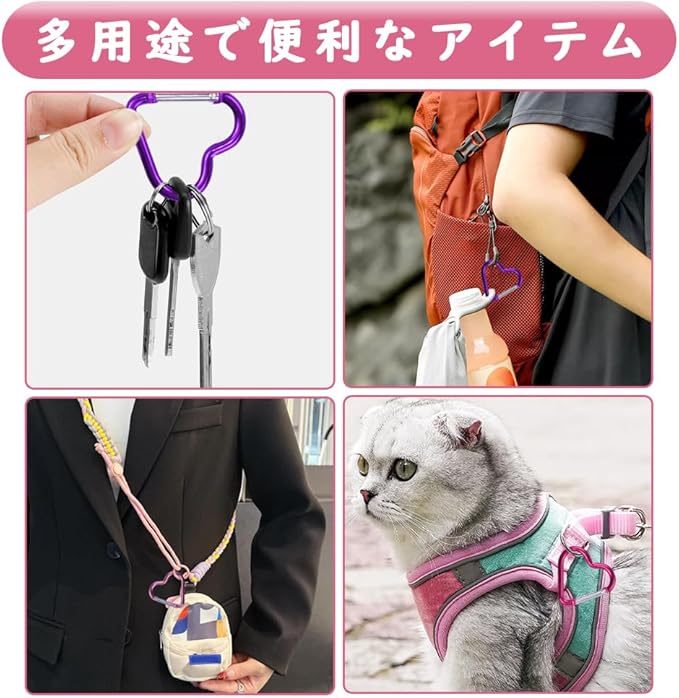 【多用途で便利なアイテム】キーリング、バッグチャーム、ペットのリード用、旅行や登山用のアクセサリー、日常的な収納整理など、さまざまなシーンで活躍します。ひとつで多機能に使える便利なアイテムです。