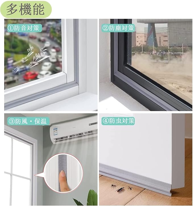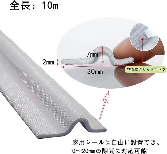 ☆【利点と有用性】隙間テープの長さは10mです、必要に応じて自由にカットできる一方、柔軟に曲げることができ、変形しにくい。隙間テープの背面の両面テープには強力のタイプが採用されており、脱落しにくい、長く使用することができます。摩擦に強く、しなやかでコシのある素材がすきまをしっかりとふさいで、夏はエアコンを外に逃がさず、冬は外からの冷気をストップ。冷暖房機器を最大限に生かして電力消費を抑えます。防音、防虫、防塵、防水、花粉対策、気密性向上が特徴です。隙間に使えると、一定程度に室外の騒音を吸収でき、静かな環境をキープします。外からの音の侵入を防ぎ、夜間の熟睡を可能にします。