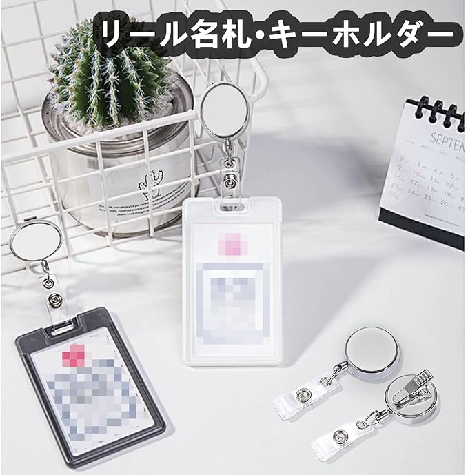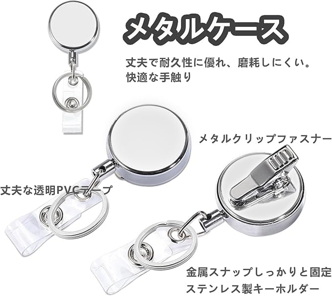 【梱包内容】:吊り下げ名札用リール*4個、取り外し可能なキーリング*4個