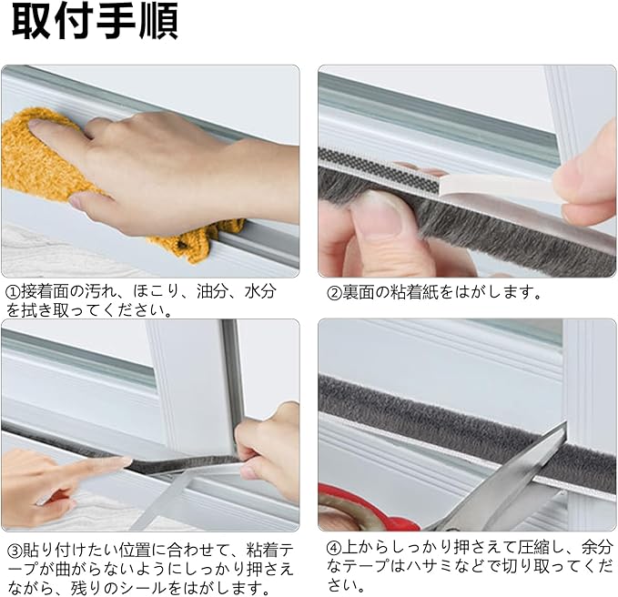 ☆【高品質素材】モヘアシームテープは高品質のポリプロピレン製で、耐候性に優れて、もっと良い気密効果に達します。自己粘着性があり、粘着力が強いので、木枠、金属枠、塗装枠などあらゆる種類のドア枠や窓枠に貼ることができ、簡単かつ迅速に使用できます。すき間風をストップするとともに、クッションによりドアを閉める際の音も静かにする防音効果のある製品。また、防水性、防カビ性、耐磨耗性に優れ、弾力性、耐久性に優れ、長期間安定した性能を維持します。