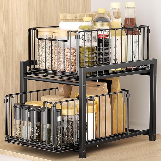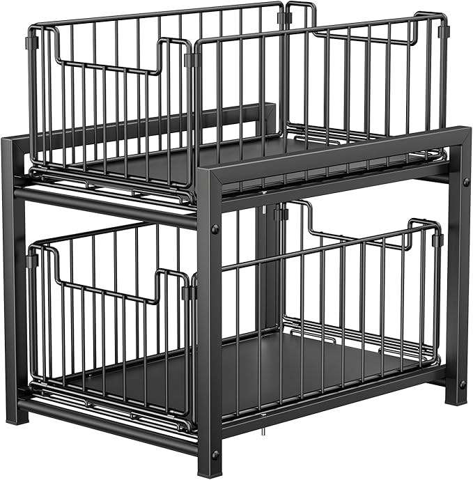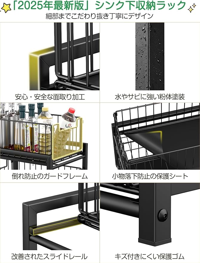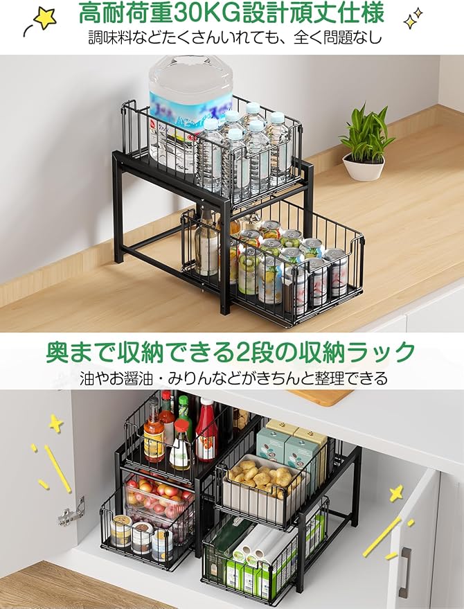 TKUIN シンク下ラック 収納 スライド 幅27 奥行37 高さ38.5cm 大容量 引き出し 2段 キッチン収納 洗面台下 収納ラック キッチンラック 台所 整理収納 キッチンストッカー スチール製丈夫 シンク下収納ラック (Black) | etshop