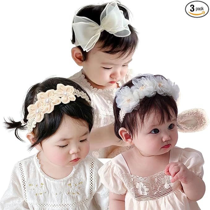 【費用対効果の高】新生児から使える可愛い赤ちゃんのヘアバンド3点セット、髪がまだ生えととのっていない時期でも、着用することでかわいくおしゃれにしてくれます。