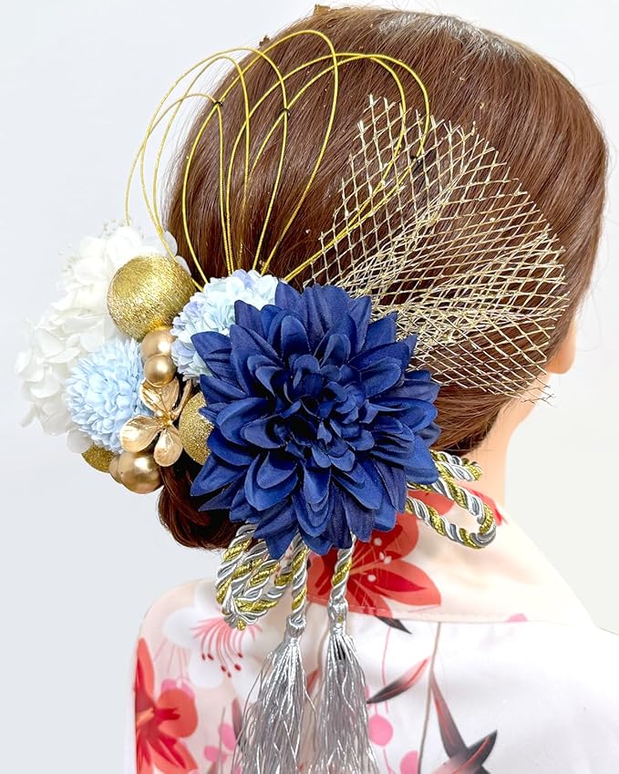 [ULITU] 髪飾り 成人式 卒業式 ヘアーアクセサリー ドライフラワー 造花飾り 水引 紐 紫陽花 ダリア かすみ草 金箔 人気 和服 着物 振袖 袴 花火大会 浴衣 七五三 結納 入学式 結婚式 発表会 夏祭り | etshop